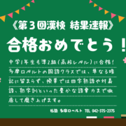 多摩地域で唯一無二、55年の歴史を刻み続ける寺子屋私塾「多摩ロベルト」です。 本日、待ちに待った漢字検定の結果が発表されました。桜ヶ丘校と若葉台校、両校舎の掲示板には、努力の結晶である合格者たちの名前が誇らしく並んでいま […]