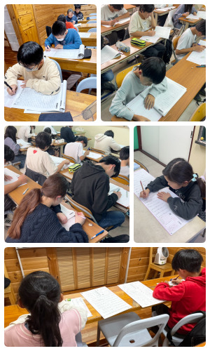 小学1年生から中学3年生まで、40名近い塾生たちが真剣な表情で挑戦。どの子も最後の一秒まで集中し、これまでの努力を発揮していました。