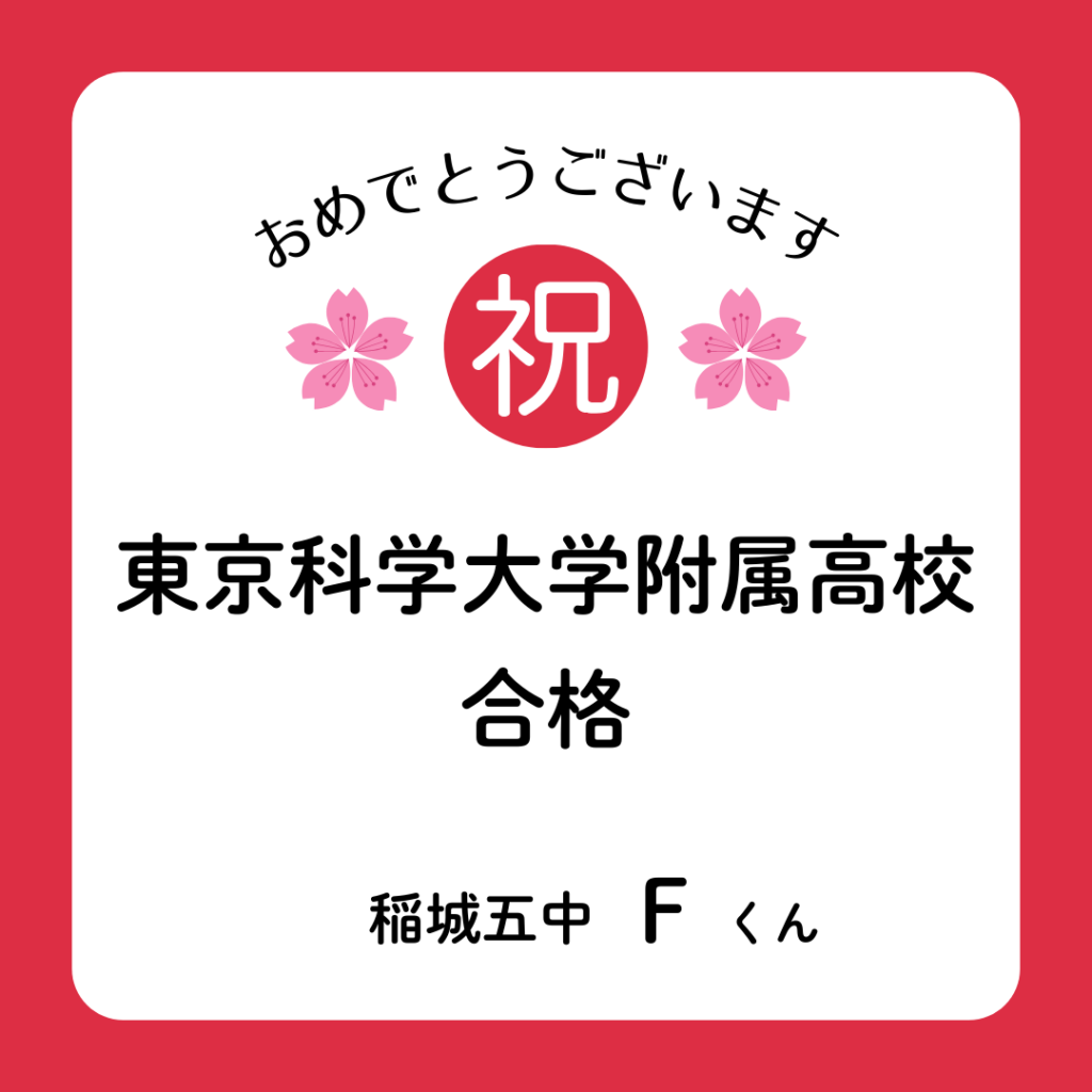 多摩ロベルトには、今年も嬉しい報告が続いています。昨日は、稲城第五中学校の生徒が報告をしに来てくれました。国立高校である東京科学大学附属科学技術高校への合格。本当によく頑張りました。心から拍手を送りたいと思います。