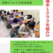 現中1クラスは、着実に力を伸ばしています。 現在、このクラスでは中1の学習内容をすでに修了し、数学は中2の1学期内容、英語は中2内容の総まとめに入っています。先取り学習ではありますが、無理に進めることはありません。理解と […]