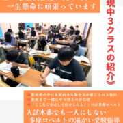高校入試が始まり、現中3生の教室には、自然と引き締まった空気が流れています。生徒たちは過去問に真剣に向き合い、分からない問題は直ぐに教師に質問しながら、第一志望校合格に向けて一歩一歩前進しています。受験期らしい緊張感の中 […]